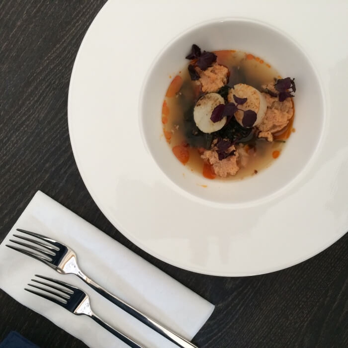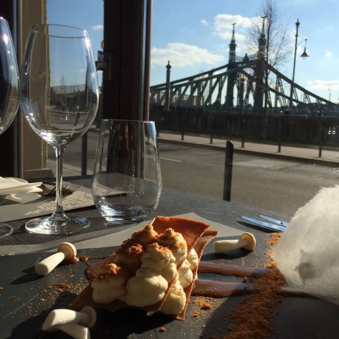 Egyik pénteken Vikivel egy ebéd randit szerveztünk és az Up & Downra esett a választásunk. Gyönyörű napos idő volt,úgyhogy egyből lehuppantunk az ablak mellé, hogy elnézegessük a Dunát és a Szabadság hidat. Csatlakozott hozzánk Judit – a hely PR-osa – , aki amellett hogy nagyon kedves és jó társaság volt, hozzám hasonló maximalizmussal kezelte az étel fotózásunkat. A szeme sem rebbent, amikor a századik fotót lőttem az előételekről, ezzel kockáztatva, hogy kihűl a levese.