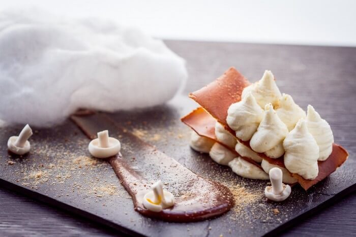 A desszert volt a kedvencem. Szarvasgombás fehércsoki mousse, karamellizált shimei, mizó ropogós. Kötelező fogás! De beszéljen helyettem a kép róla.