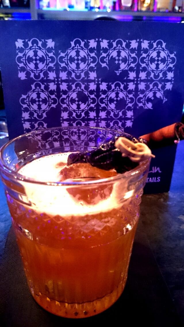 Smoking Barrel 10 éves Taliskerrel, Unicum Szilvával, vaníliasziruppal, The Bitter Truth Aromatic Bitters-szel és lime-mal. Ez az erőteljes Old Fashioned twist nagyon szépen áll a füstös whisky karakterének, egyedüli hibaként a picit sok citrust lehet megemlíteni.
